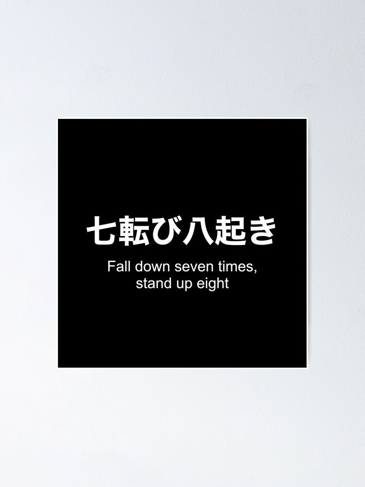 Japanese Proverb Fall Seven Times, Stand up Eight Japanese Quote Print for Office Wall Art "Fall down seven times, stand up eight," is basically a metaphor that is said to demonstrate the fact that one must never accept failure The idiom "fall seven times, stand up eight" has been referenced in numerous songs, movies, books, and other forms of media Here is our list of 10 more famous Japanese proverbs.